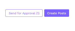 All posts that are marked for approval on the calendar will need to be sent to the approver all at the same time, so schedule all of the posts first and mark them for approval prior to clicking the Send for Approval button. Once all of the posts are ready and have been marked for approval, look for the Send for Approval button at the top right beside the Create Posts button. The Send for Approval button will display how many posts are awaiting approvals.