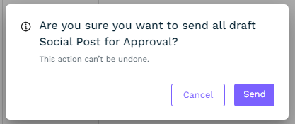 Once the button has been clicked, a confirmation pop-up will appear. Simply click the Send button to submit the post(s) to the social approver.
